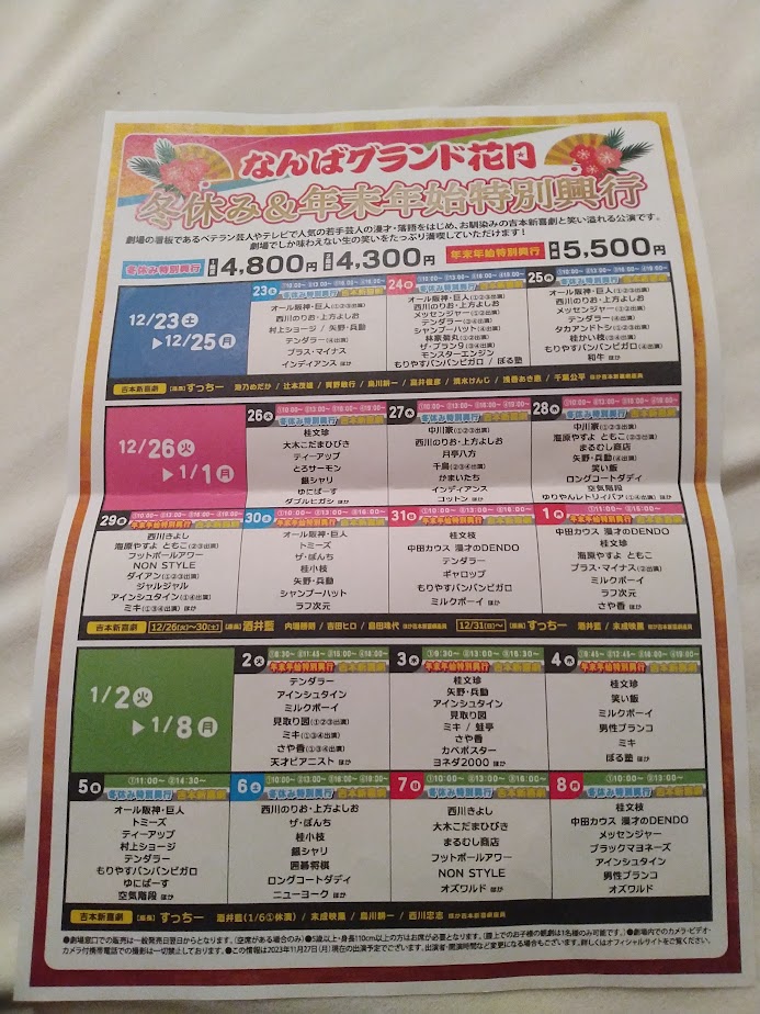 ここで「なんばグランド花月」で行われる「冬休み&年末年始特別興行」をお見せします。