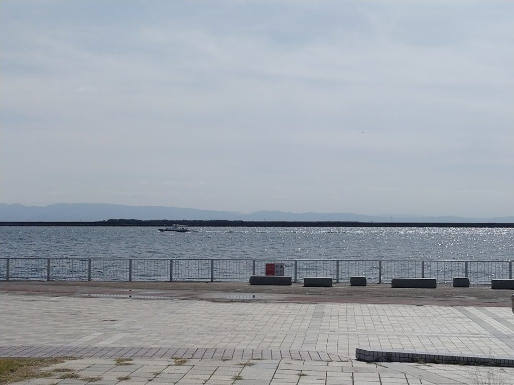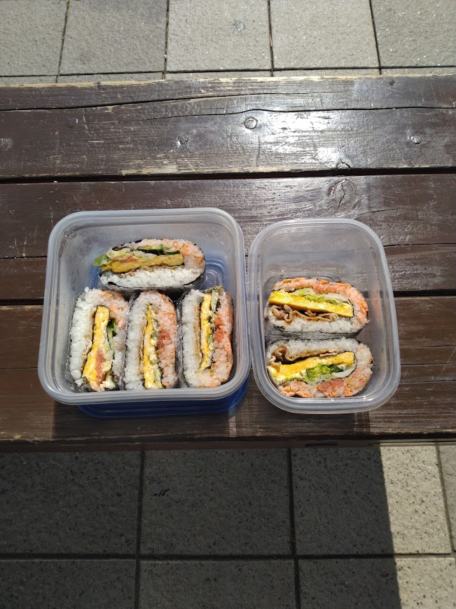 海が見える場所で、出かける前に家で作った「おにぎらず」と言うのを食べました。