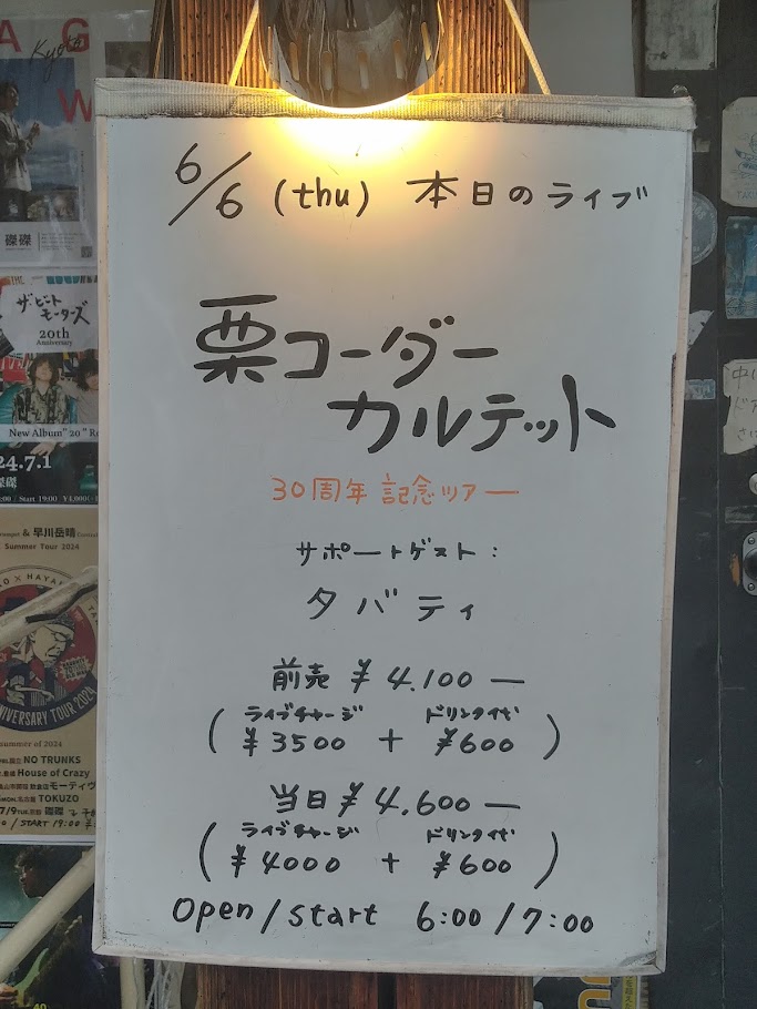 6月6日(木)に京都あるライブハウス「磔磔」に行き「栗コーダーカルテット」と言うバンドのライブを見に行ました。