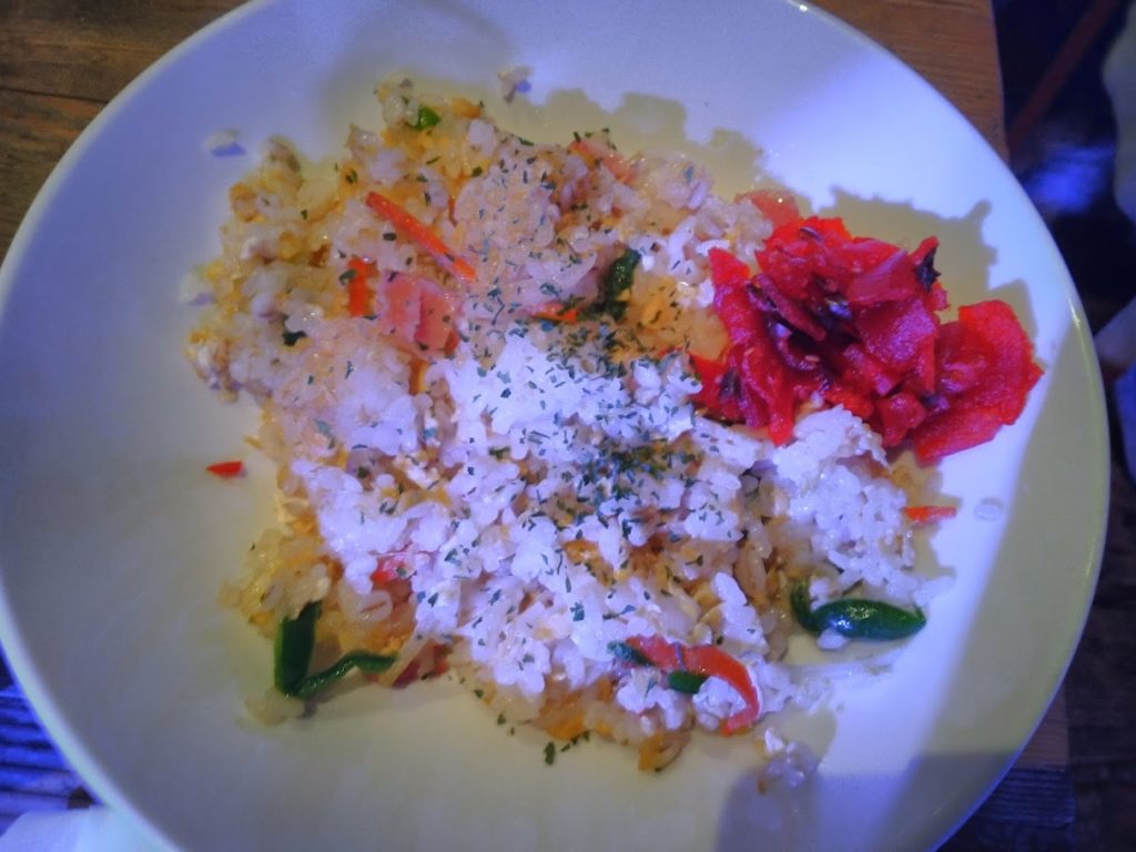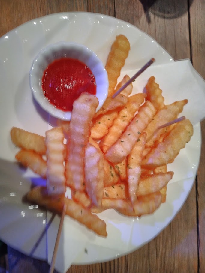 着いてすぐ、ご飯とジュースを頼みました。僕が頼んだのは「フライドポテト、ピラフ、オレンジジュース」です。