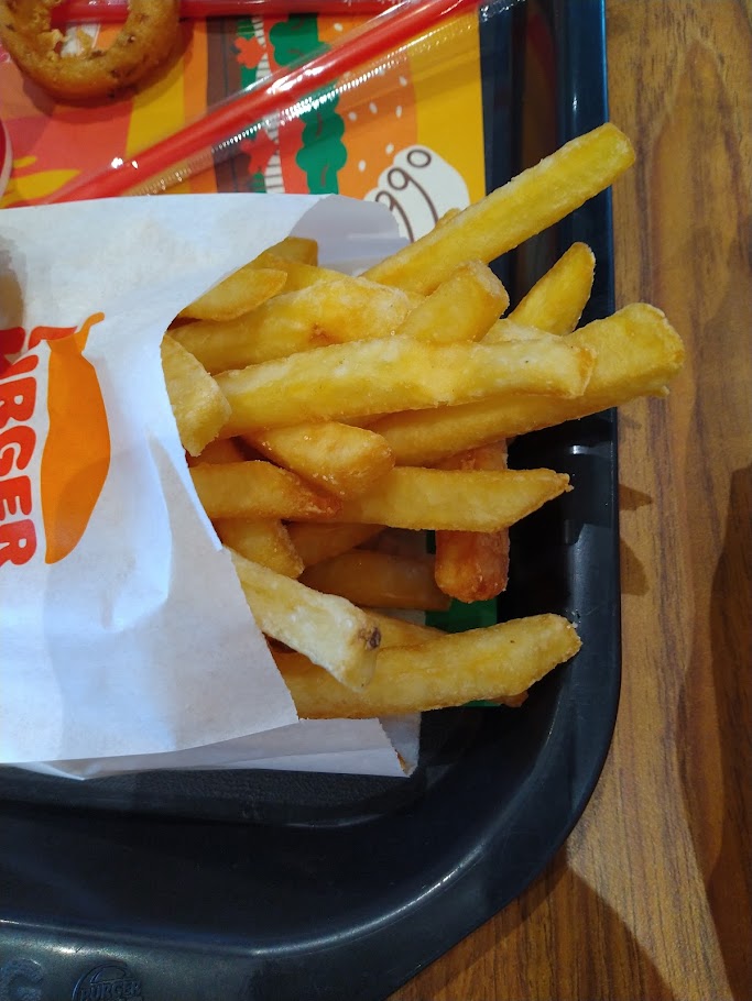僕が食べたのは「フィッシュバーガー、フライドポテト、オニオンリング」飲み物は「ジンジャエール」です。