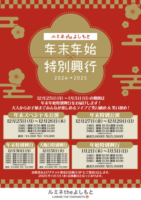 東京にある「ルミネtheよしもと」の年末年始特別興行はこのメンバーが日替わりで出演します。