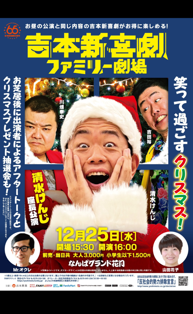 12月25日(水)に「吉本新喜劇ファミリーナイト劇場」が開催されます。
