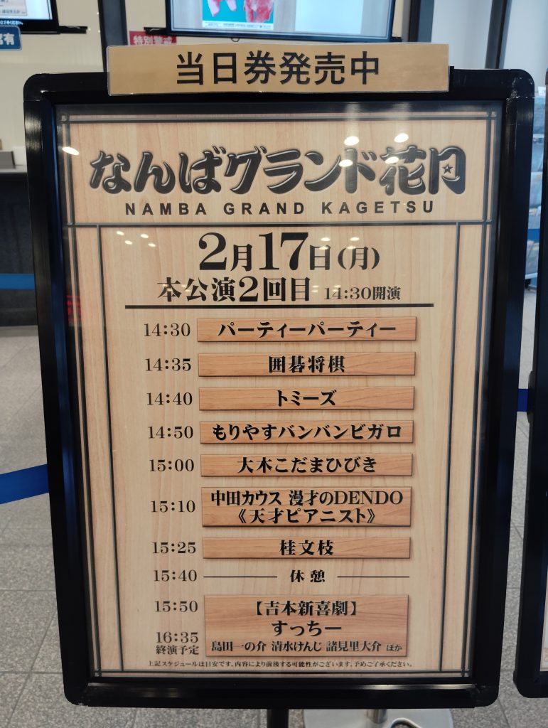 先程、「なんばグランド花月」に行ってきました。