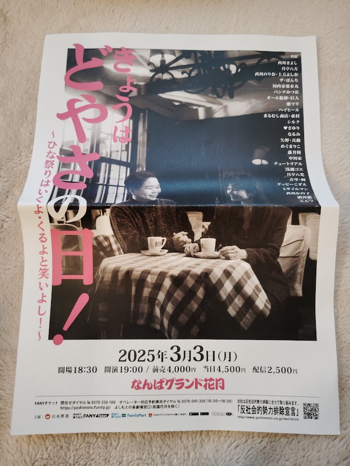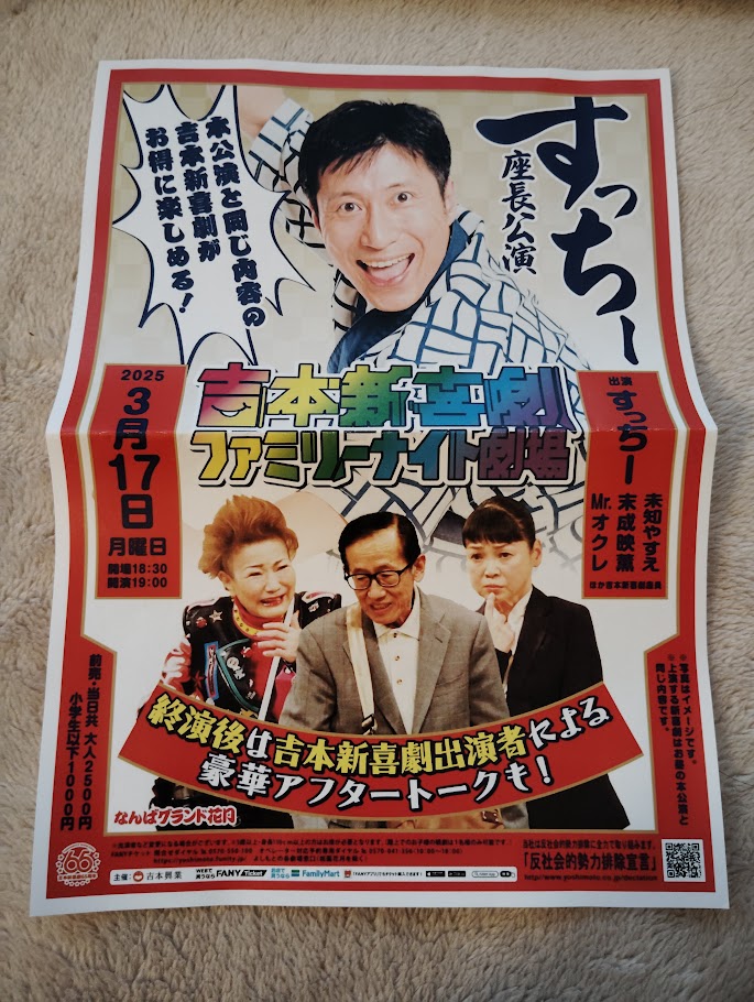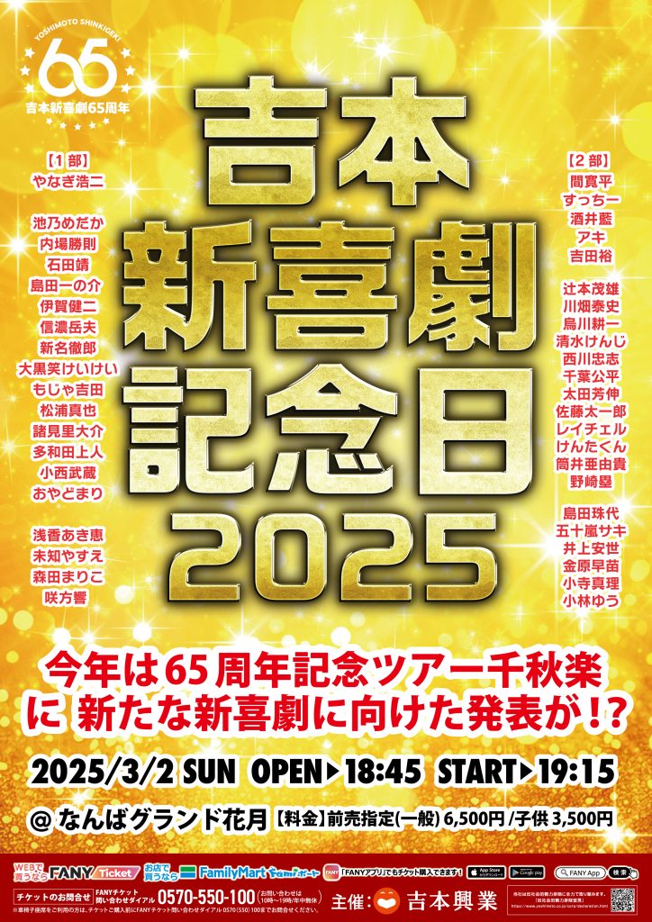 こちらの「吉本新喜劇記念日2025」の劇場チケットは「残席あり」だそうなので皆様お早めに。