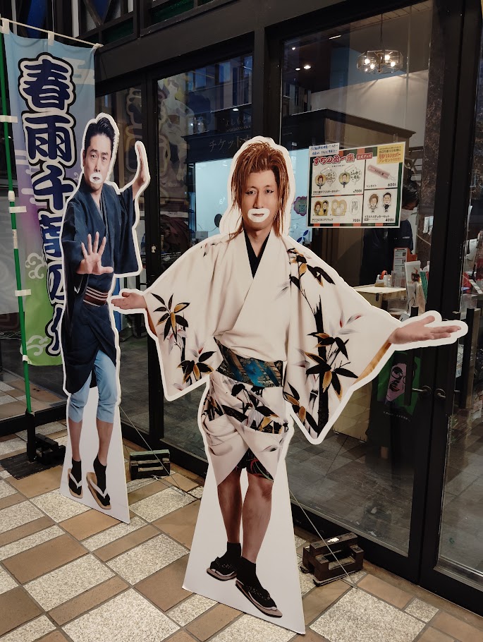 劇場入口に春雨すちの丞(すっちー)春雨千葉の介(千葉公平)のパネルとのぼり旗が設置してありました。