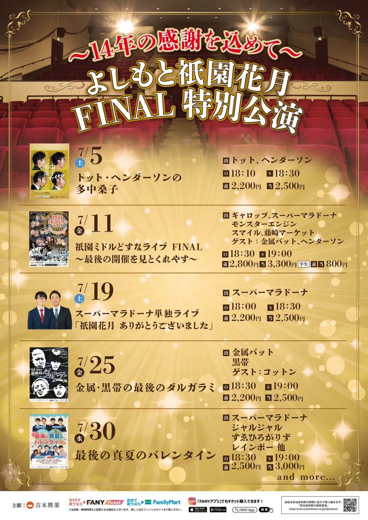 14年間の感謝を込めてよしもと祇園花月FINAL特別公演が開催されます。