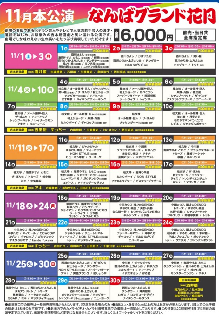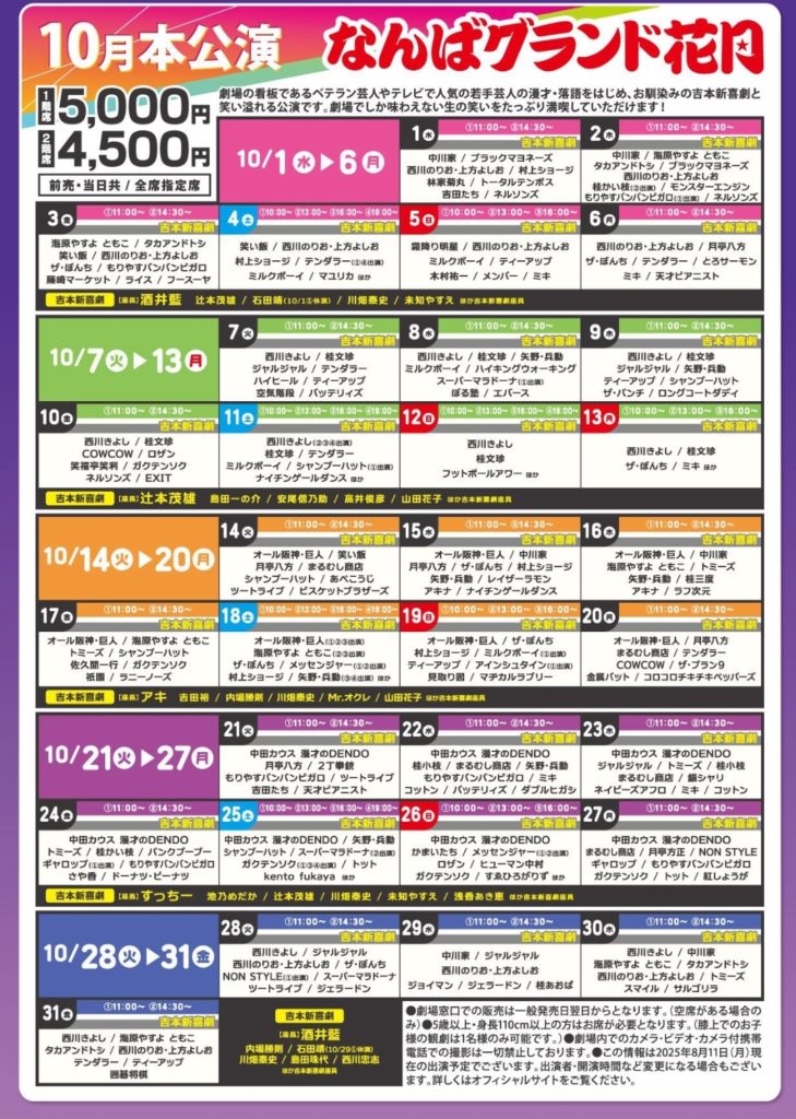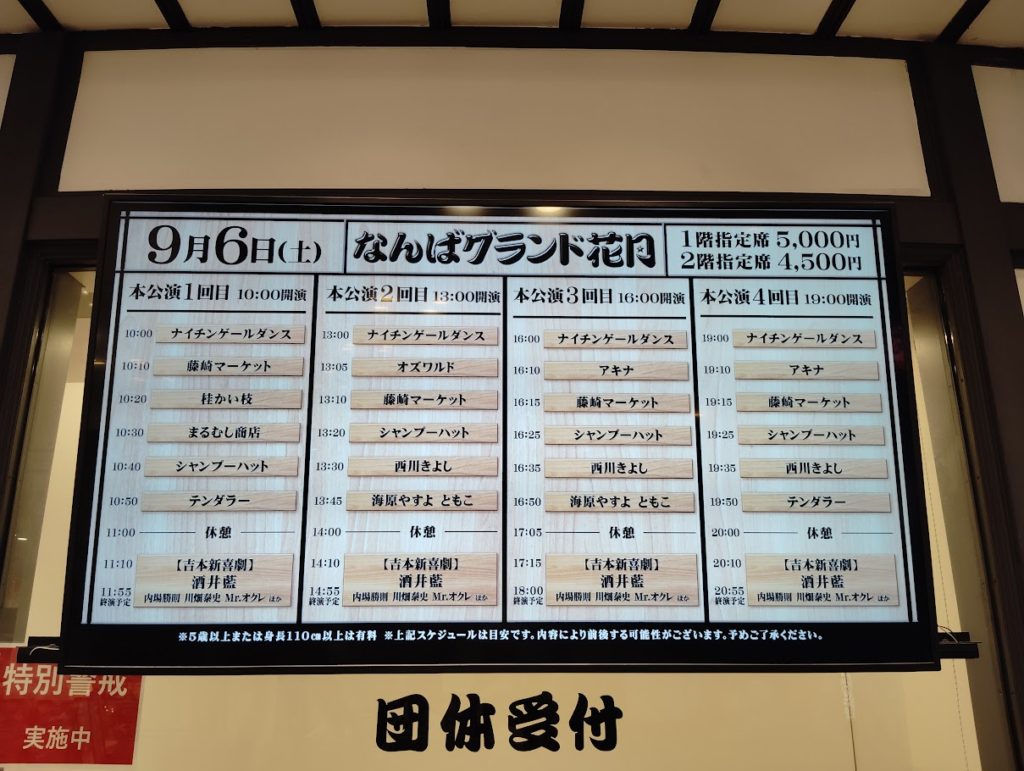 ここで「なんばグランド花月」の公演を紹介します。