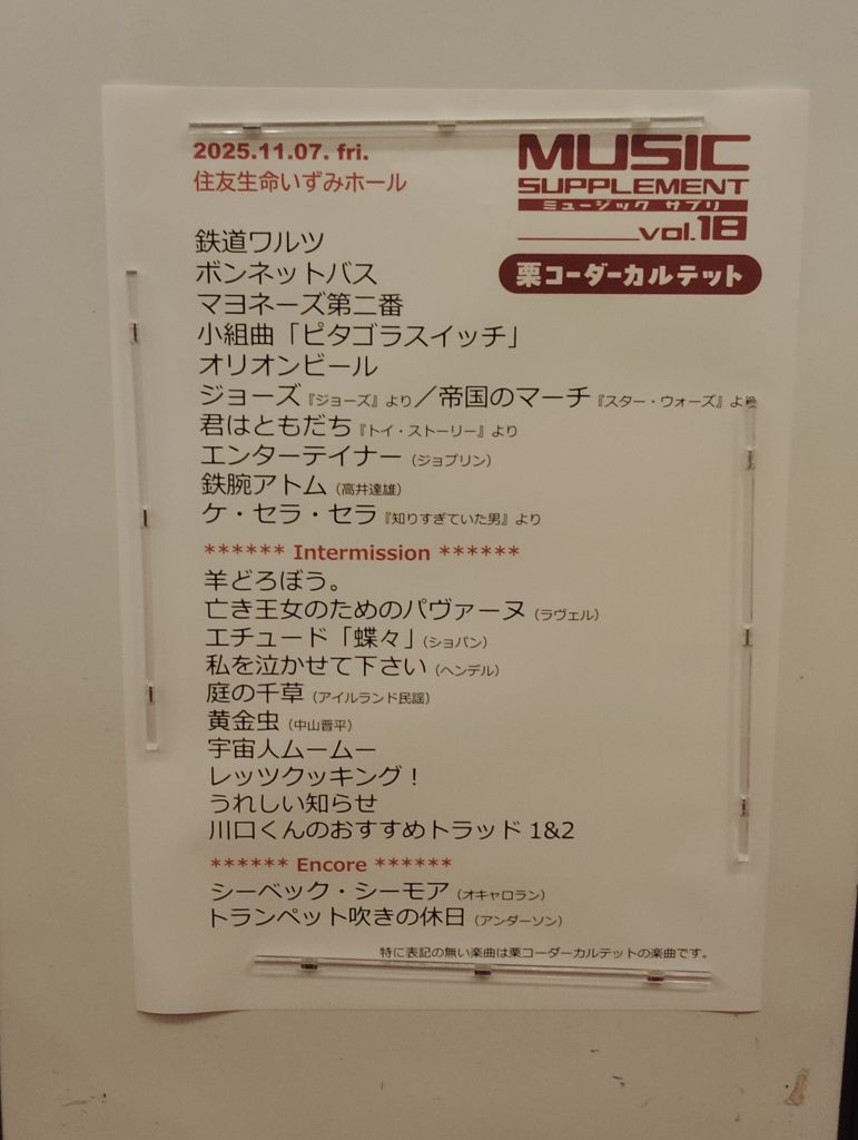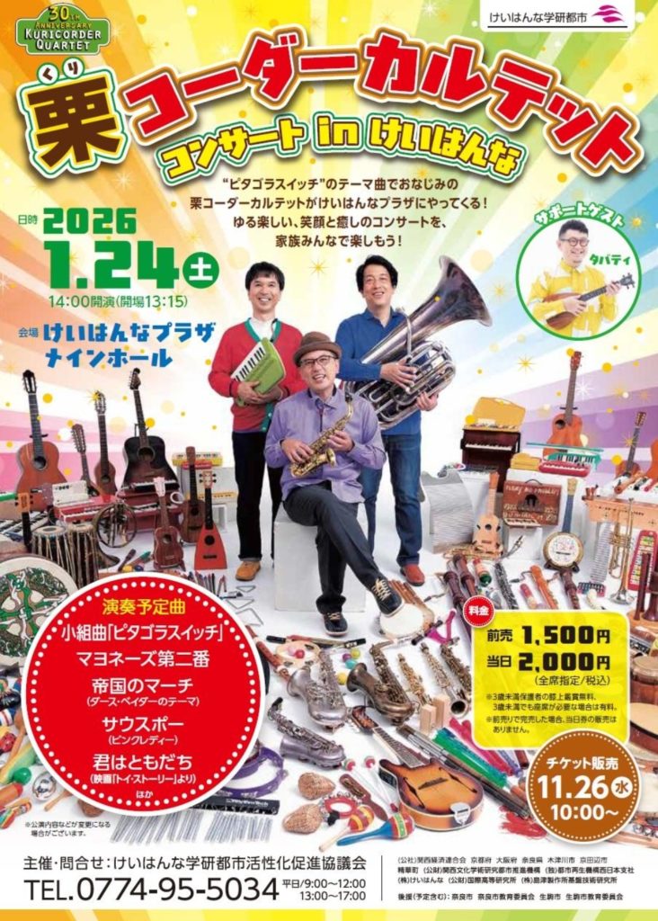 告知があり、2026年1月24日(土)けいはんなプラザメインホールにて「栗コーダーカルテットコンサートinけいはんな」があるそうです。