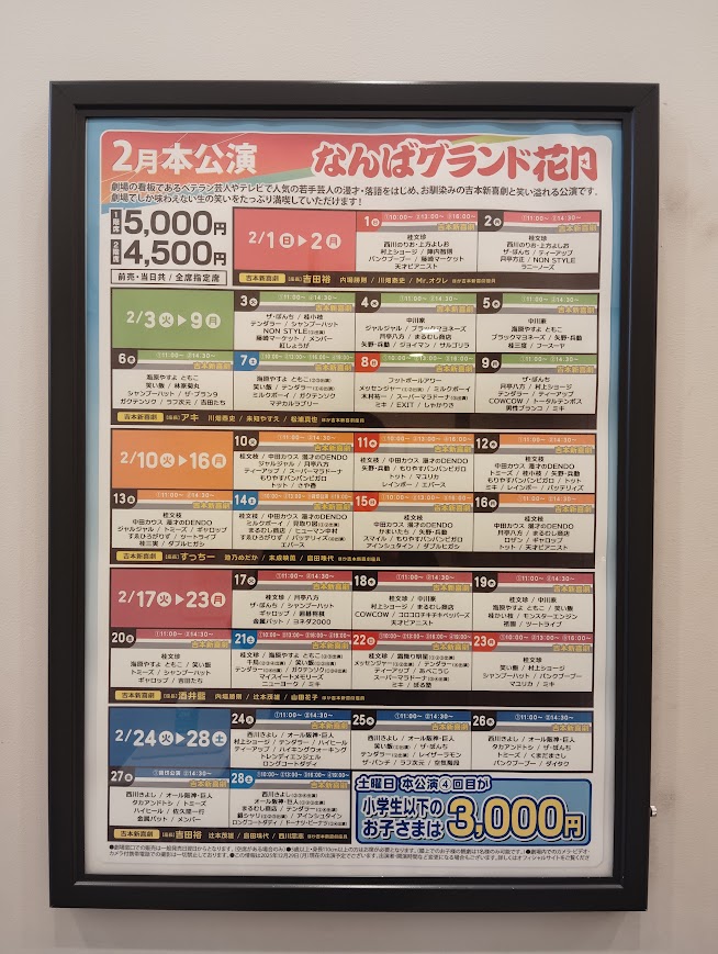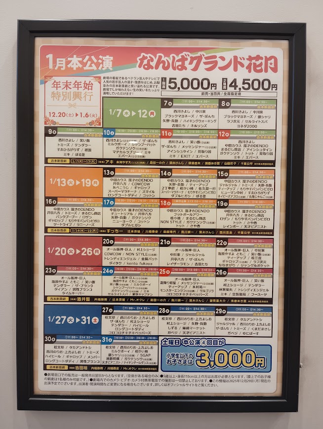 ここで、なんばグランド花月」の特別公演・本公演を紹介します。